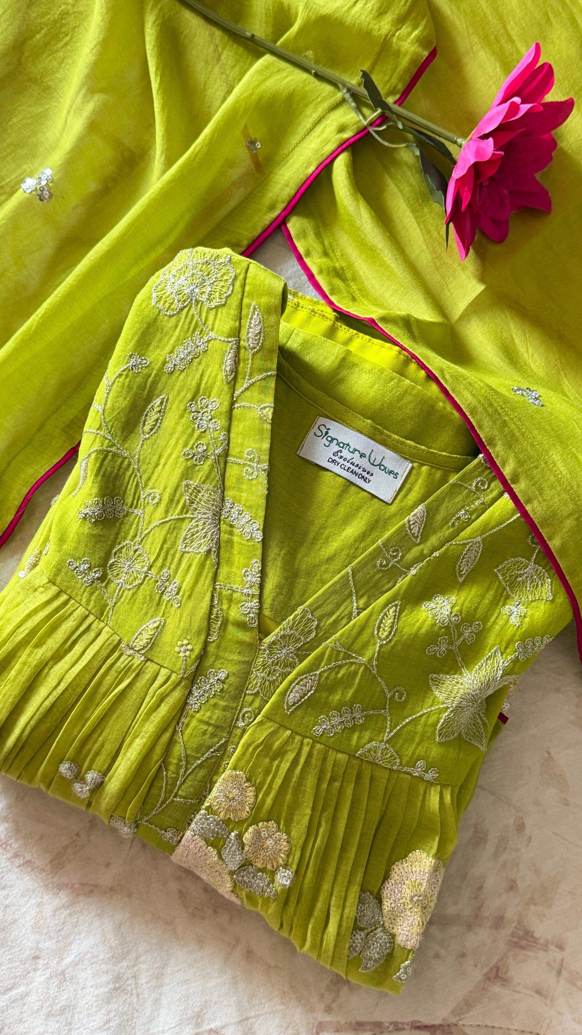 Beautiful outfit and the shade is soooo fresh and striking! That vibrant lime green with the hot pink piping is such a bold and classy combination.