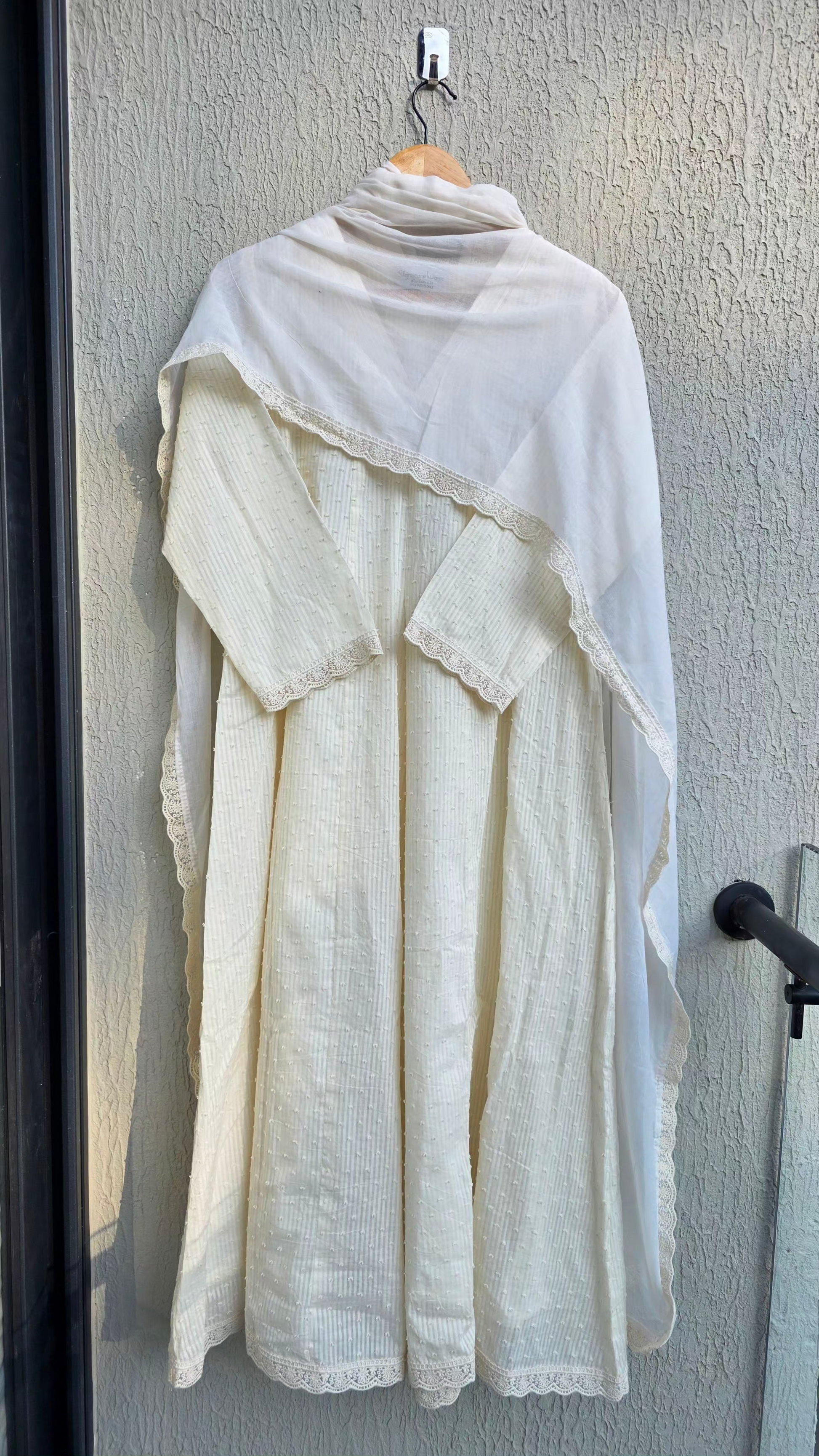 Here we bring to you a very very gorgeous panel cut Anarkali done in beautiful Off white colour.