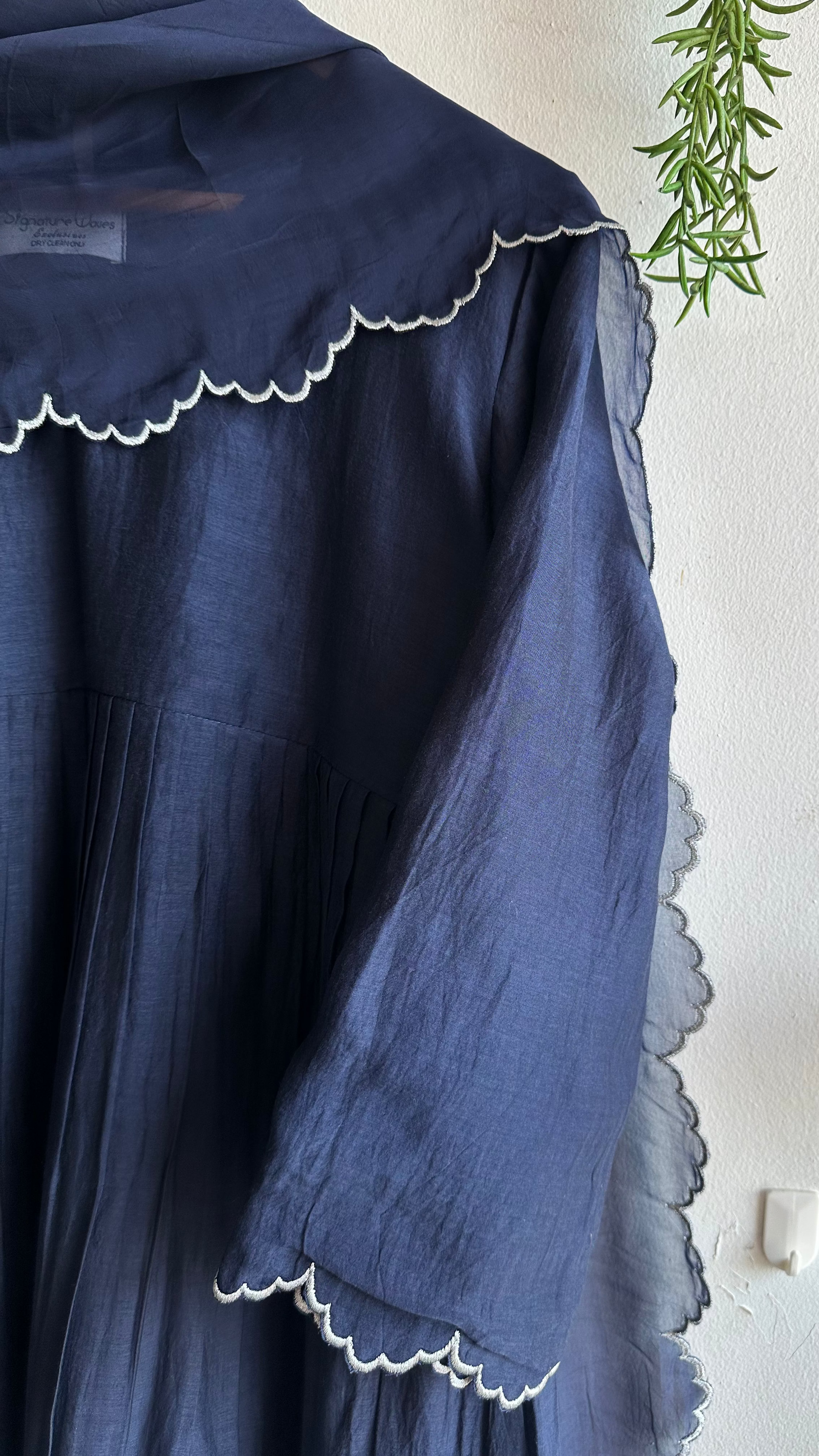 Step into timeless elegance with our Navy Blue Chanderi suit set, exquisitely crafted with silver scallop detailing that adds a touch of refined shimmer. This three-piece ensemble features a rich Chanderi kurta paired with soft santoon pants and a delicate organza dupatta, creating a perfect blend of grace and sophistication. Ideal for festive occasions or elegant evening gatherings, this outfit radiates understated luxury and classic charm.