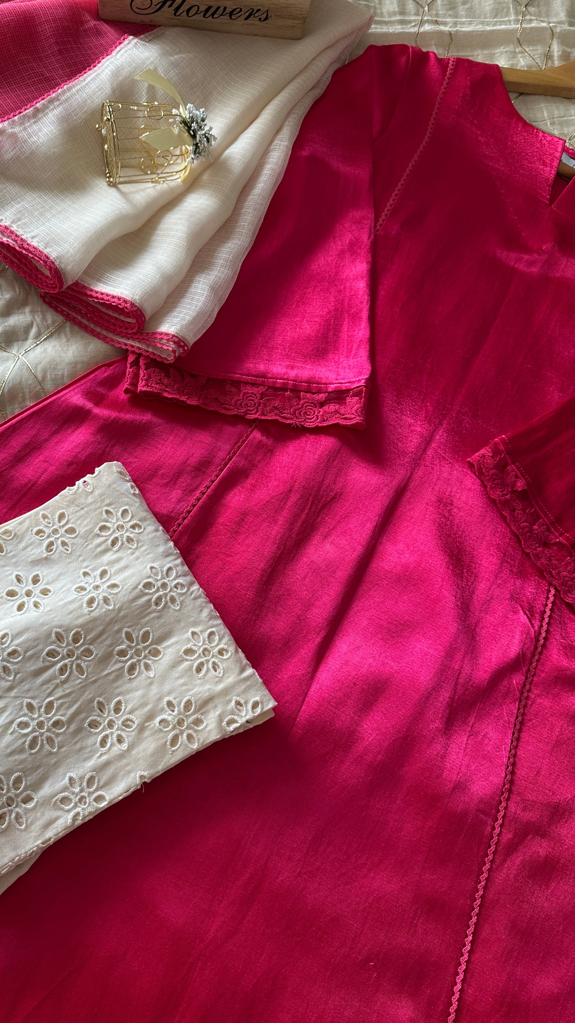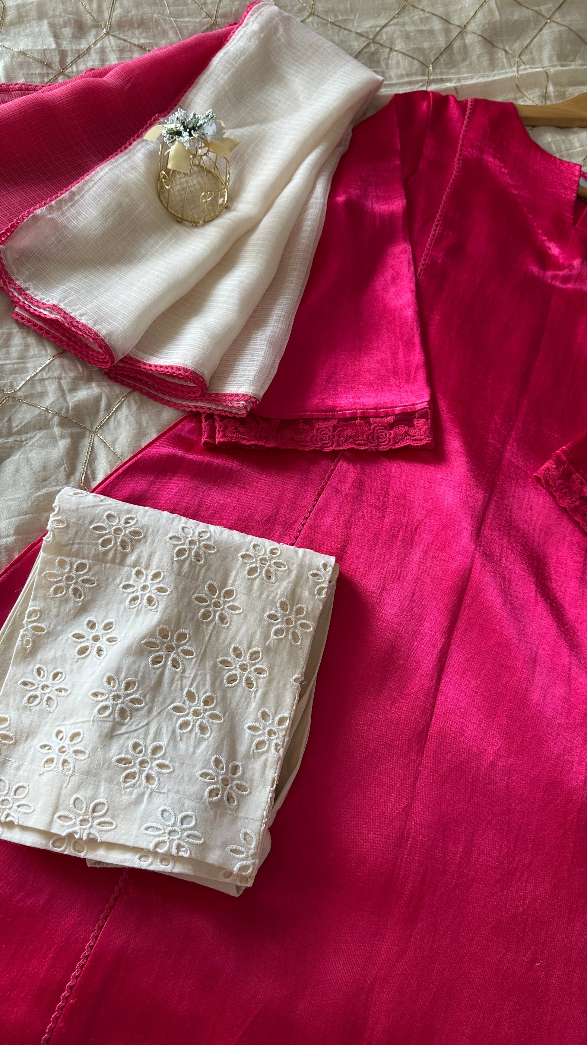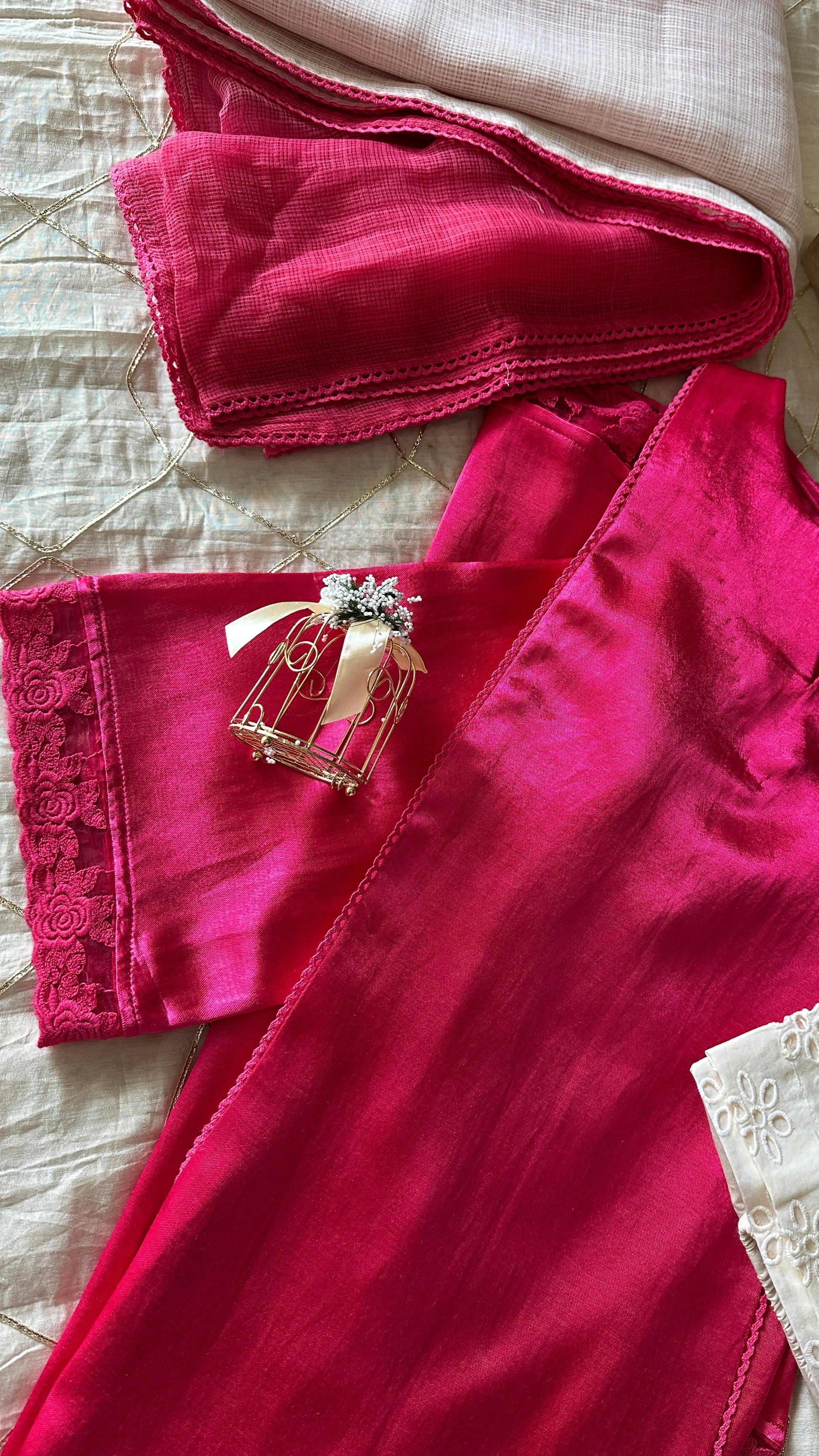 Paired with soft Hacoba pants featuring floral cutwork, and a double-shaded Kotta dupatta that flows with grace — this outfit is designed for comfort and cheer, inside and out.