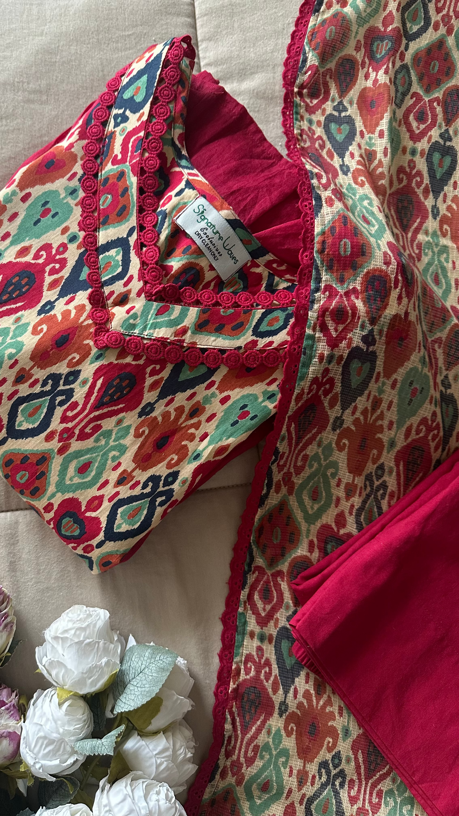 This pretty one is a beautiful symphony of mul cotton and cotton Kotta. So here we bring you “Rooh” in mul mul cotton and dupatta comes in cotton Kotta along with cotton pants.