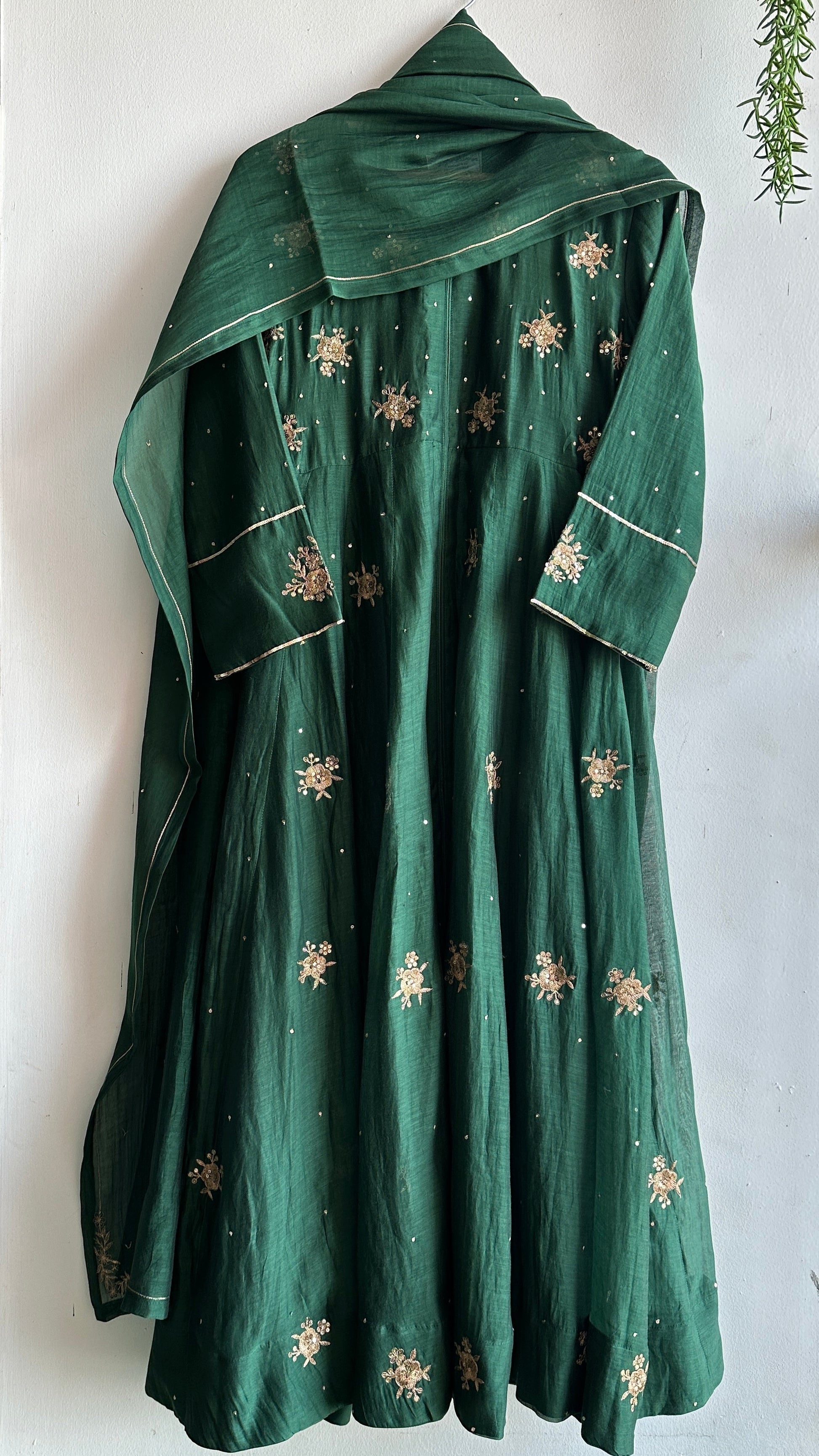 It’s a 3 pc fully stitched Anarkali suit set.